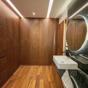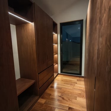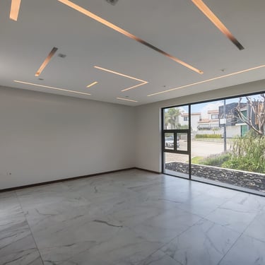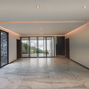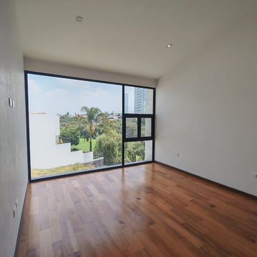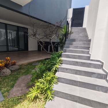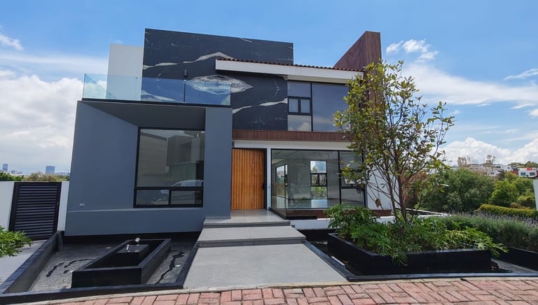 Residencia de estilo neocolonial mexicano, inspirada en las antiguas haciendas. Su fachada combina líneas sobrias con molduras, cantera rosa de Querétaro y herrería artesanal que le otorgan carácter y calidez.